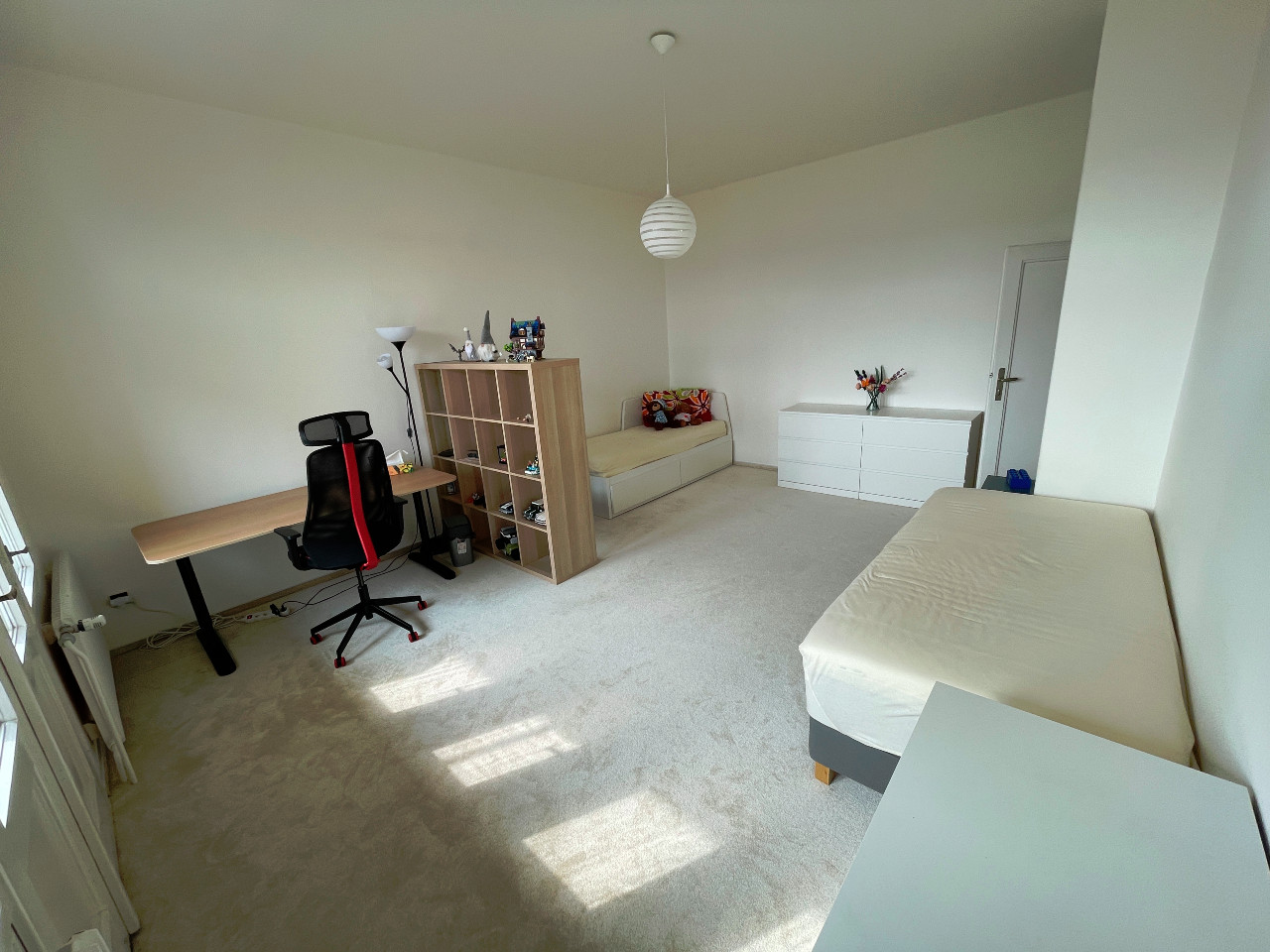 A 22 sq m room with 5 sq m balcony in three-bedroom apartment (4+1), all other rooms are free to use (except of my bedroom in which I have my office now)